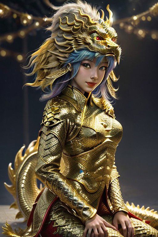 a cute 18 year old girl ,sex,girlfriends ,sad smile,random color hair,random color eyes,perfect model body,collar, medium breasts,official art, unity 8k wallpaper, ultra detailed, beautiful and aesthetic, beautiful, masterpiece, best quality,more detail,iu2N-_iu2, Chinese new year,facing_viewer,ChineseDragon,No helmet, golden dragon wrapped around