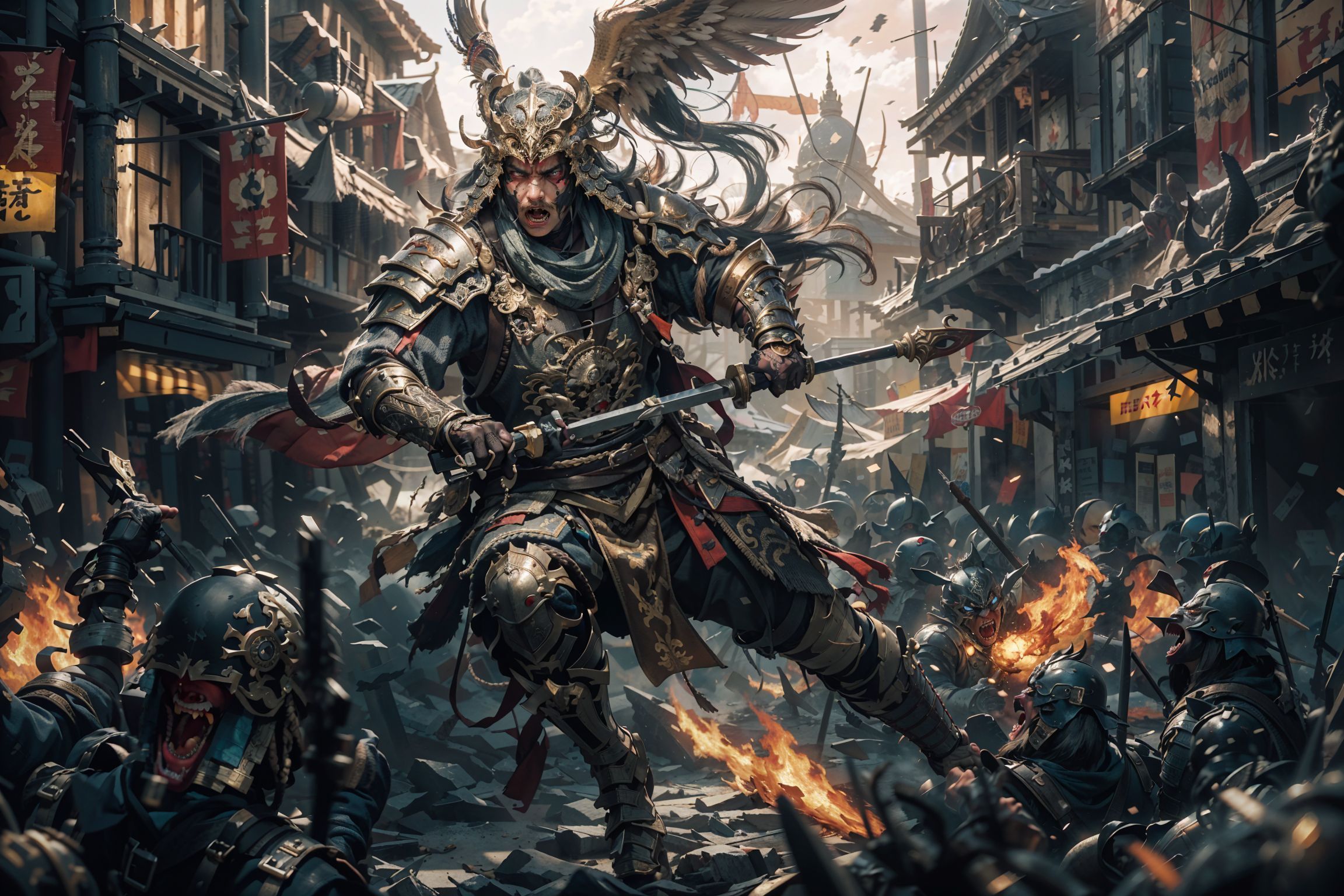best quality,masterpiece,photo realistic,intricate details,raw photo,photon rendering,octane render,absurdres,ultra detailed,trending on artstation,8 k masterpiece,a warrior mask,teeth visible,beard,moustache,angry face,(angry expression:1.3),