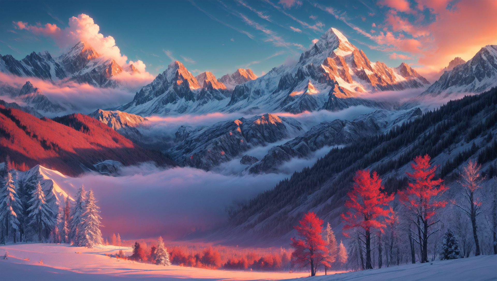 ((masterpiece:1.4,best quality)), cloud, outdoors (mountains), spring glade, scenery, sky, winter, (early morning:1.4),morning red, high detail, abundant, 8k, high detail, wallpaper, <lora:more_details:1.5>, <lora:landscapes-6-2023-04-27-120356-6faaedf2:0.6>