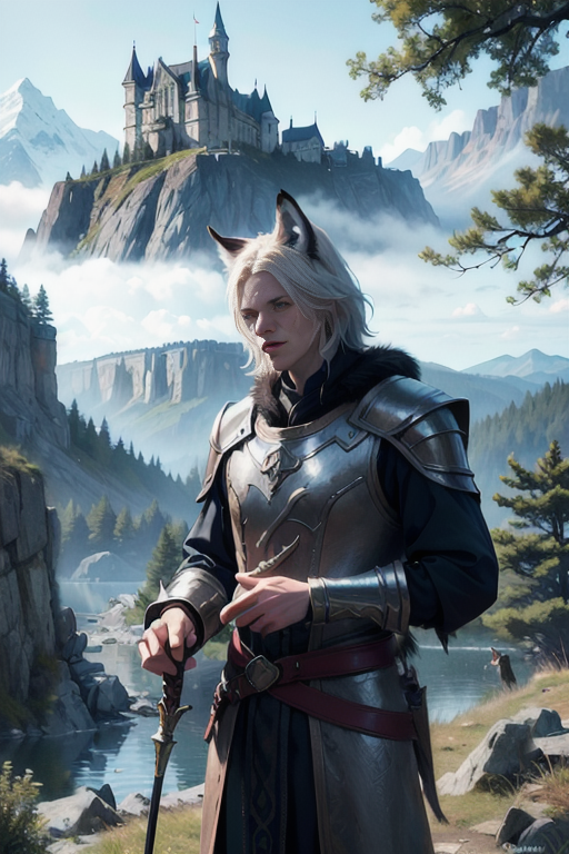 fantasy_\(setting\), photo of a [Man|Lynx], cinematic film still from Skyrim live adaptation, (khajiit:1.2), (masterpiece),(best quality:1.0), (ultra highres:1.0), detailed illustration, dreaming, forest, detailed sky, (mysterious huge castle)