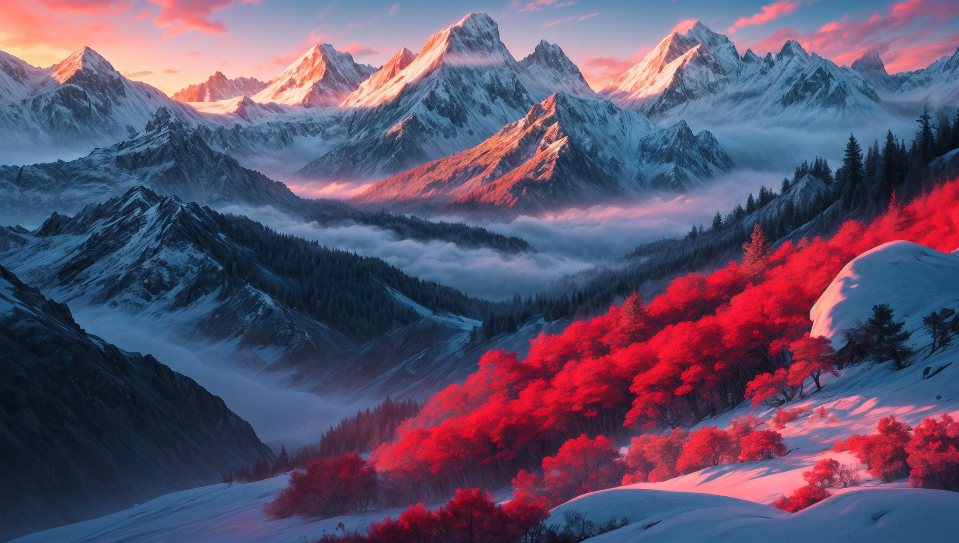 ((masterpiece:1.4,best quality)), cloud, outdoors (mountains), spring glade, scenery, sky, winter, (early morning:1.4),morning red, high detail, abundant, 8k, high detail, wallpaper, <lora:more_details:1.5>, <lora:landscapes-6-2023-04-27-120356-6faaedf2:0.6>