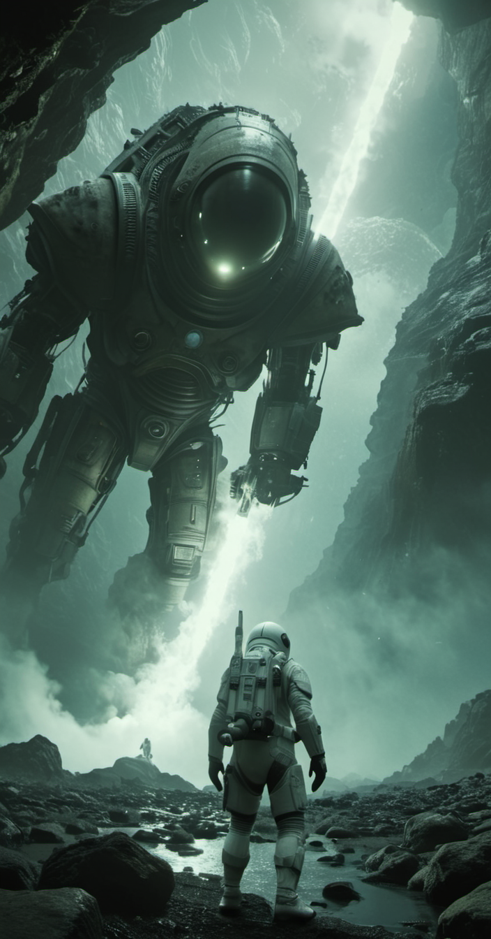 wabstyle, Final Showdown,Unreal Engine 5 render style Final showdown, Unreal Engine 5 render, an astronaut wearing white spacesuit, facing off against a giant vertical alien spaceship, on dark beach, in the style of death stranding, volumetric fog, mist, smoke, cinematic film style, special effects, VFX, award-winning picture, highly detailed, ultra-high resolutions, 32K UHD, sharp focus, best quality, masterpiece The left half is a golden flame, burning justice and light, while the right half is a black frost, freezing evil and darkness<lora:wabstyleSDXL:0.6><lora:çæ¢¦å·¥ä¸___æç»å¯¹å³XL_v1.0:1> <lora:add-detail-xl:1>