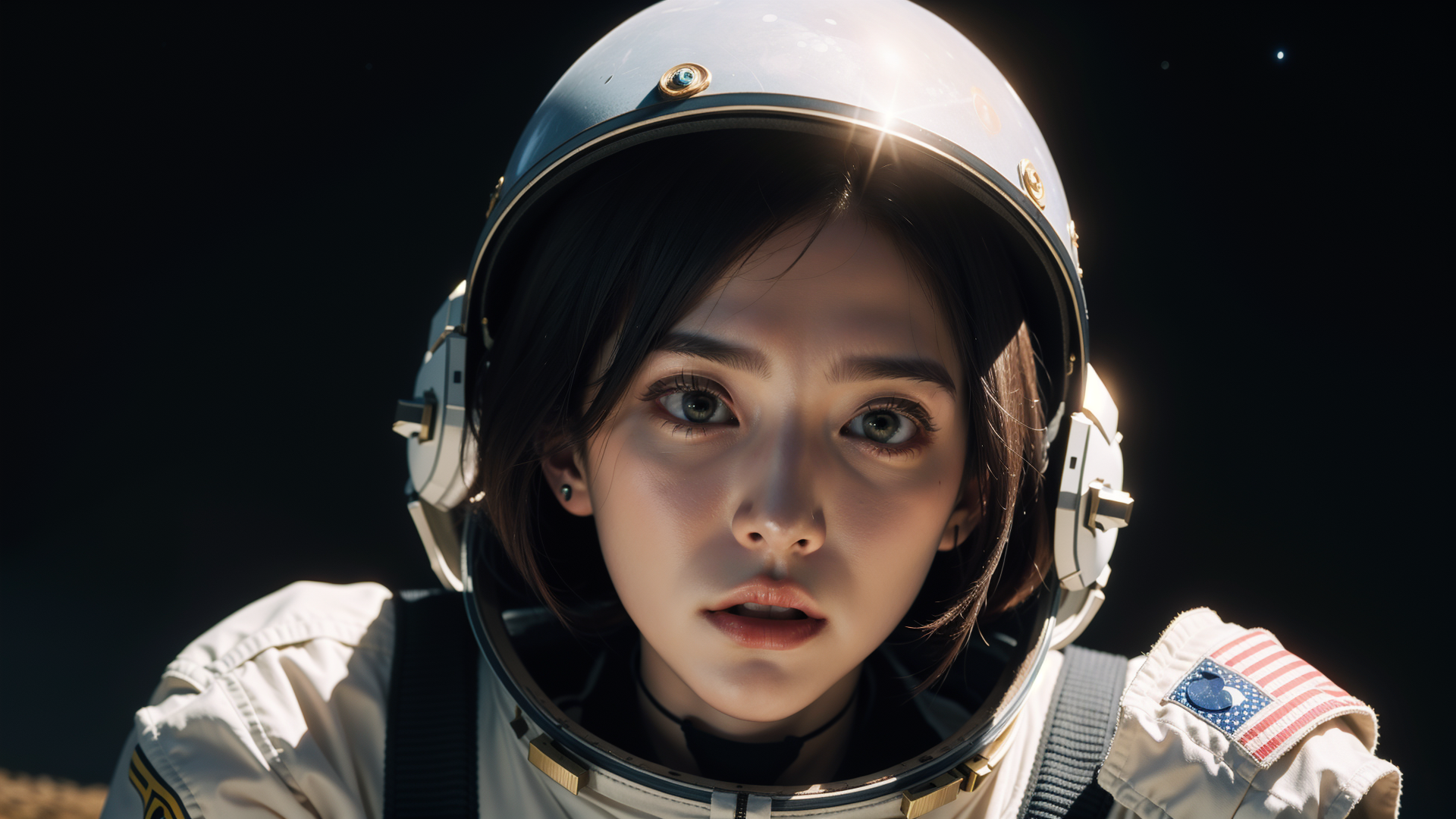 (masterpiece, top quality, best quality, official art, intricate detailed), (photorealistic:1.2), (1girl astronaut, tube, helmet, moon, stars, universe, galaxy:1.2), ((cinematic lighting)), depth of field, extreme detailed, highest detailed, dramatic lighting