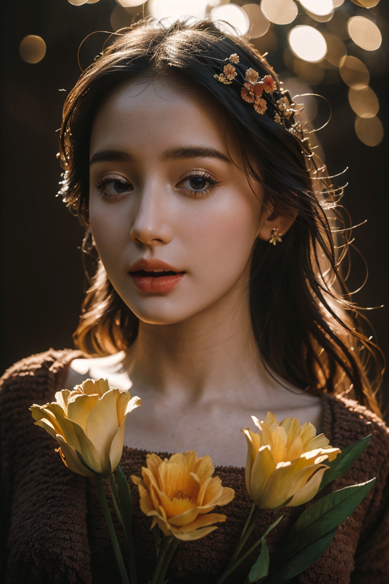 best quality, masterpiece, (photorealistic:1.4), Close up, 1 girl, Princess, upper body, Medieval, flowers around, forest background, sweet girl, IDOL, moon, -- Face Details:1.7 -- <lora:MoosMST3:1> <lora:Rokki-01:1>