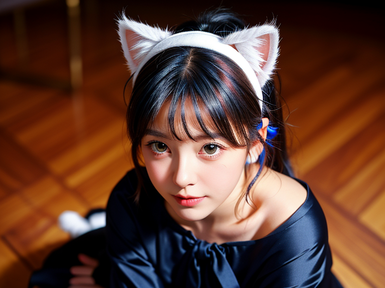 (color photo:1.23), ((best quality)), (high resolution:1.23), (photo realistic:1.4), soft lighting, sharp focus, detail skin, detail background, <lora:flat2:-0.23>, (from above:1.3, very dynamic pose:1.1), (a 23 years old exquisitely cute woman wearing (a __*/color__ cat ears hair band:1.3) and playing with cats in a victorian dynasty style classic cats cafe, medium skirt, long nose, (clear eyes:1.1, symmetrical eyes), __/*haircolor__ __*/hairstyle__ hair, bang, blush, excited), (cats:1.3),