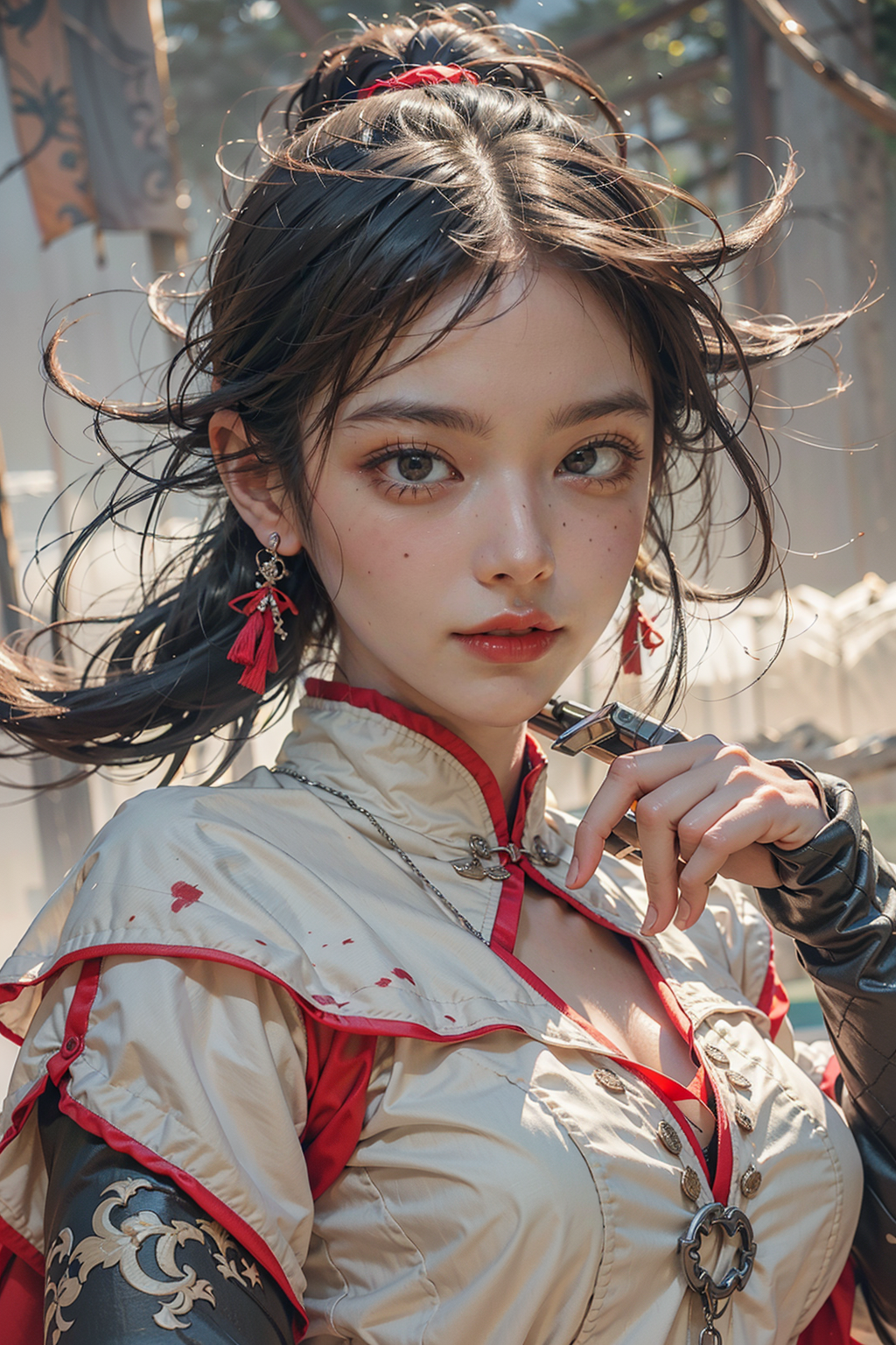 (RAW photo, 4k, realistic, exquisitely detailed skin), masterpiece, best quality, official art, unity 8k wallpaper, ultra detailed,(dark scene,low key,soft lighting:1.3), cinematic look,high saturation,best anatomy,volumetric fog, a samurai girl, slim body, sexy, charming, seductive, 1girl,weapon,sword,long hair,black hair,holding,white background,solo,holding weapon,blood,holding sword,arm guards,simple background,blood on weapon,looking at viewer,black eyes,tabi,floating hair, vivid illumination, harmonious composition, enchanting elegance, atmospheric depth, cinematic lighting, immersive atmosphere, exceptional detail, (stunning visuals), <lora:wuxia:0.8>