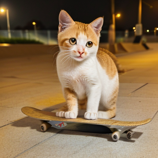 Professional photography of a Juzi cat on the skateboard ï¼outdoor background ,extremely details, 16K high quality,masterpiece<lora:Juzi_Cat:1>