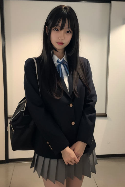 ltra-detailed,highly detailed,best quality,masterpiece,illustration,realistic,photorealistic, mio akiyama, sakuragaoka high school uniform, 1girl, solo, cosplay, very long hair, bangs, looking at viewer, cowboy shot, <lora:mio akiyama_v1_07:0.6>