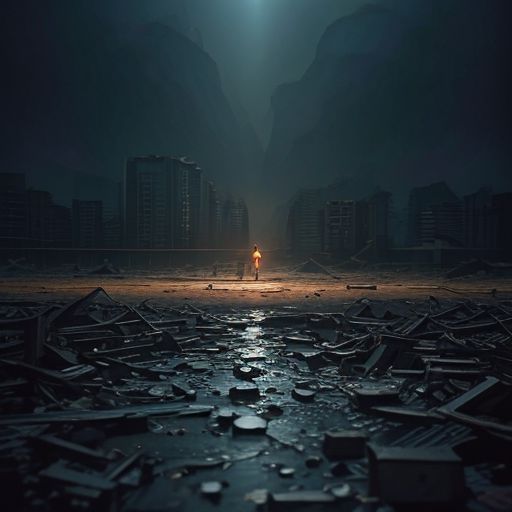 (Wide angle)+ Grimdark fantasy scene, ruined city, cursed city, sprawling metropolis, desolation, abandoned, intense shadows, moody lighting, cinematic, 16k uhd, fujifilm xt3, photorealistic epic fantasy, ultra-detailed, exquisite features, masterpiece quality, film grain