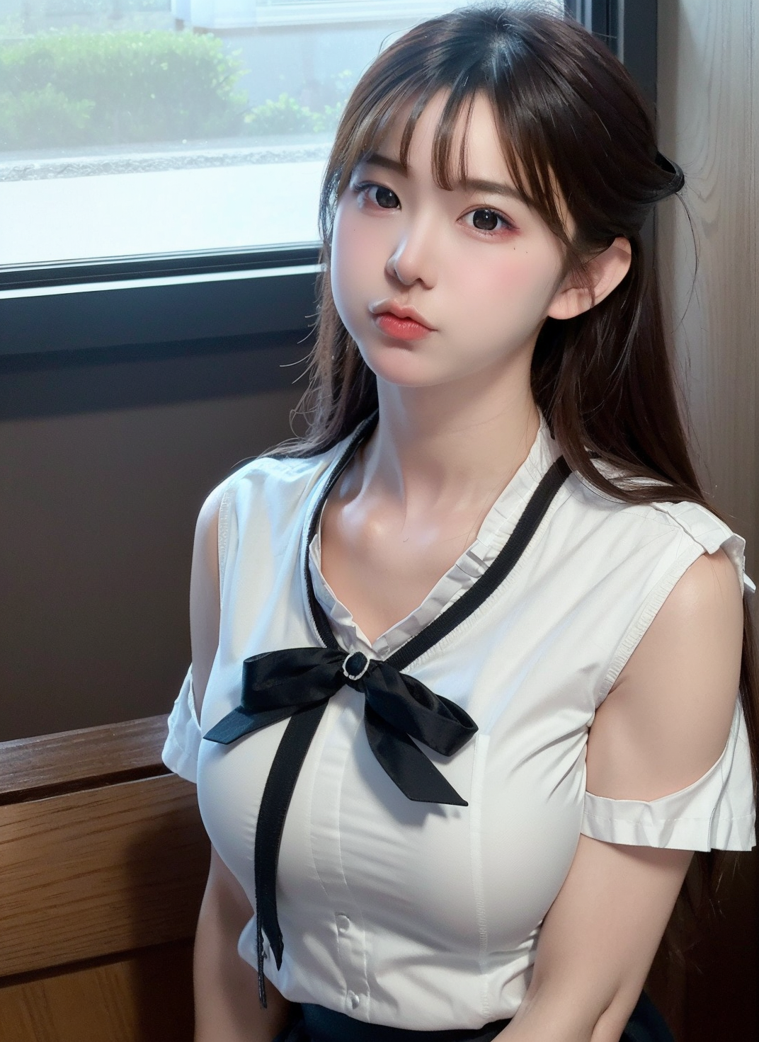 Best quality,masterpiece,ultra high res,(photorealistic:1.4),raw photo,1girl,in the dark,deep shadow,low key,cold light,blur background,xixizi,upper body,serafuku,sailor,school_uniform,