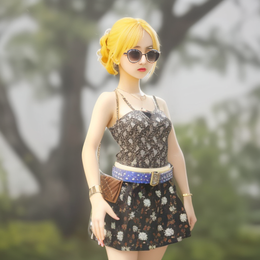 high quality, 1girl, Belt, Glass, Hairstyle, Handbags, Jewelry, tops, skirt, background, cute 18 girl face