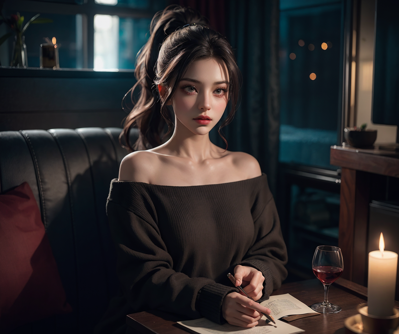 lifelike rendering, immersive atmosphere,impeccably detailed, visually stunning, creative zenith, exceptional standard, subdued contrasts, soft illumination, transfixing looks,emotive depth, artistic emotionality, compelling glances, subtle facial expressions, orphanage,habit uniform,burgundy,high ponytail,offshoulder,indoor,solo,sfw, (lifelike rendering, immersive atmosphere, moody lighting,glowing ambiance, enchanting radiance, luminous lighting, ethereal atmosphere, mesmerizing glow, evocative hues, captivating coloration, dramatic lighting, enchanting aura:0.9) <lora:lowra_v10:0.45> <lora:oc_v10:0.23>