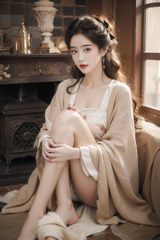 absurdres,realistic,photo,((classicism)),Cinematic Lighting,moody lighting,1girl,teenager,shiny_skin,slender,long hair,curly hair,light_blush,pubic hair,bare_legs,wrist_cuffs,kind_smile,extremely delicate and beautiful,amazing,masterpiece,growth,ultra-detailed,highly,Amazing finely detail,THIN LEGS,<lora:anxiang:0.7>,anxiang,hanfu, extremely delicate and beautiful,depth of field,amazing,masterpiece,growth,ultra-detailed, highly, Amazing finely detail,