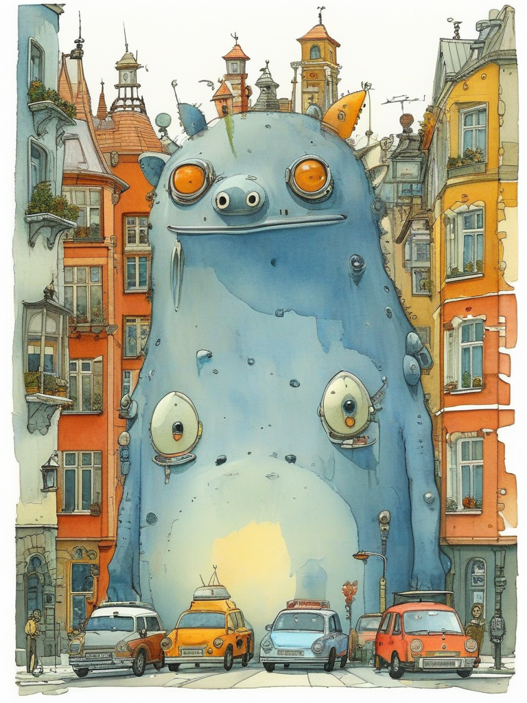 masterpiece,best quality,popsurrealism art,masterpiece,illustration,watercolor,ink,<lora:tbh105-sdxl-dim64:1>,style of Mattias Adolfsson,street:1.5