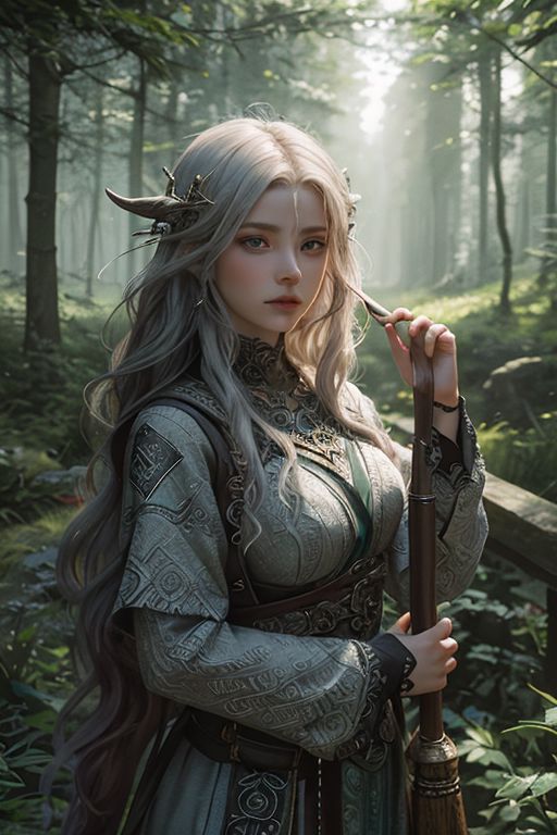SiobhanSiobhan, 18, unites Sidhe grace and Viking strength in a magical forest. Her attire blends Celtic patterns with Viking armor, adorned with symbols of magic and runes for nature's healing and protection. The forest responds to her, with ethereal lights and nature's whispers surrounding her, showcasing her Sidhe essence and Viking resilience. Her wise gaze hints at deep knowledge, capturing her dual heritage as a guardian of balance and harmony between the mystical and the martial. This image portrays Siobhan as a bridge between worlds, embodying the magic in nature's whispers and her vision for unity.