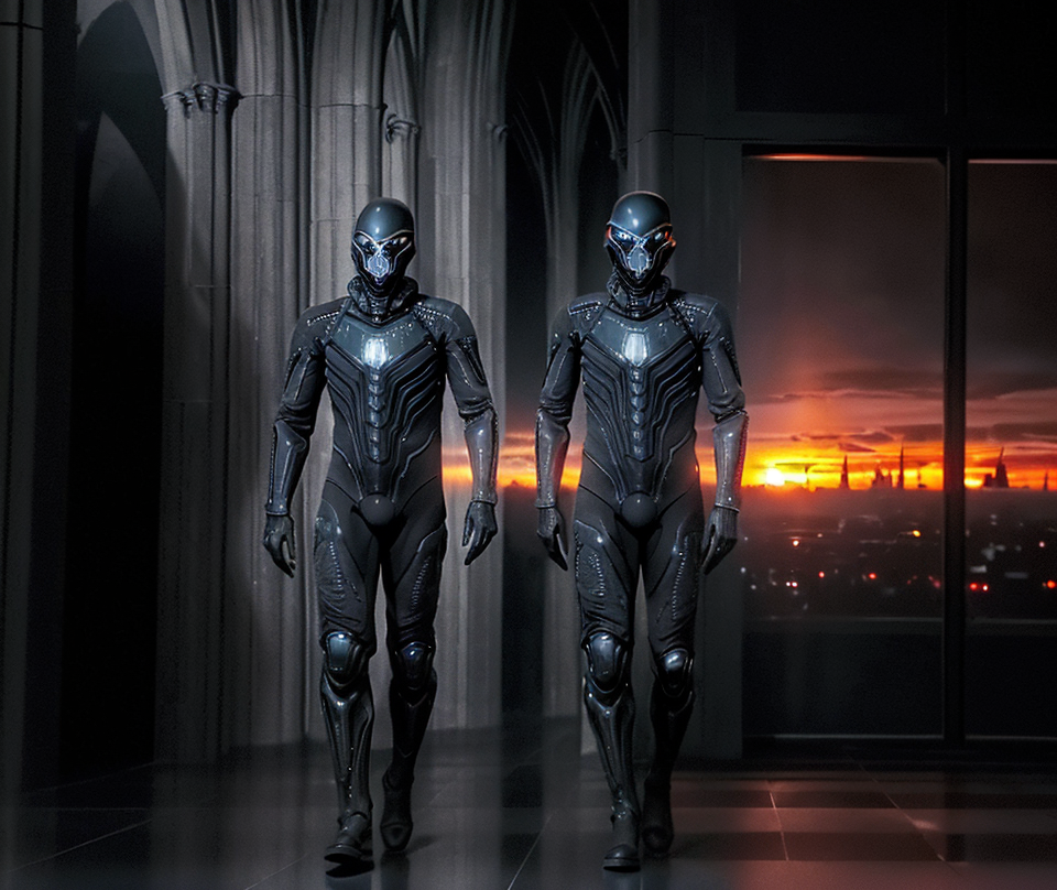 (((full body))),(((5 males, handsome)))+++, (((wearing gray and black nano-suits)))+++, (((in bloody sunsets))), (((inside giger cathedral)))+++, super high resolutions, best quality, masterpiece, depth of field, realistic, photo-realistic, cinematic, (battlefield behind:1.38), (dark and foggy environment:0.6), (spaceship outdoors background:0.6), (heavy fog environment:0.6),