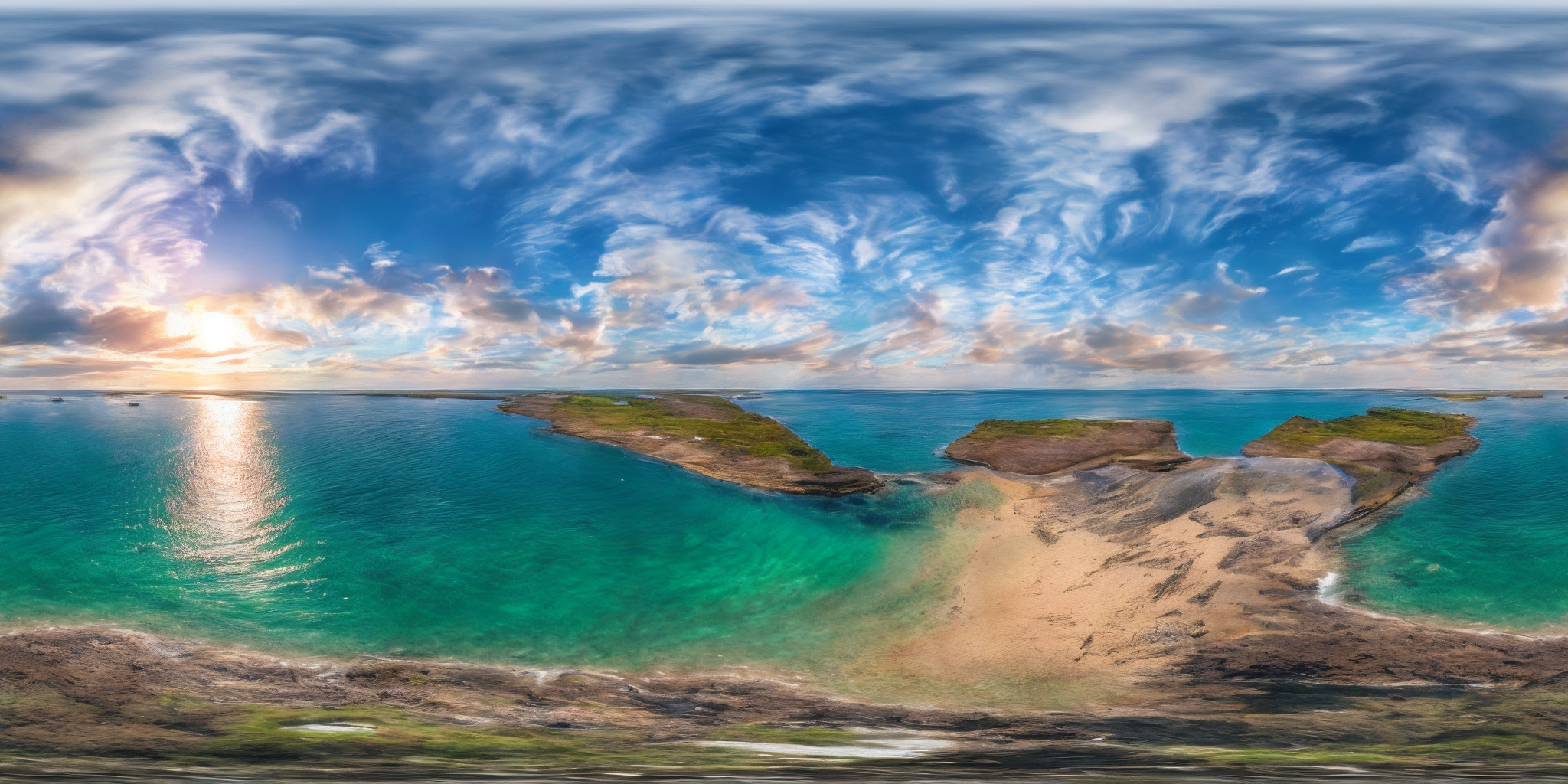 360panorama,Seaside landscape,aerial perspective,dynamic movement,coastal exploration,natural coastal setting,golden hour lighting,contemporary digital artist,realistic style with a touch of surrealism,digital painting,landscape,vibrant and harmonious color palette,3D rendering,high resolution,detailed textures,immersive experience.,<lora:hangpaiV1.4-000005:1>,