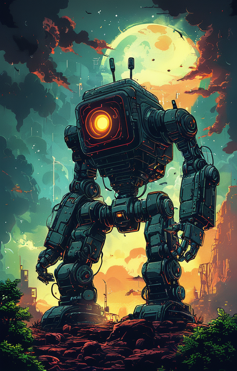 masterpiece,best quality,<lora:tbh160-sdxl:0.9>,illustration,style of Dan Mumford, portrait of robot