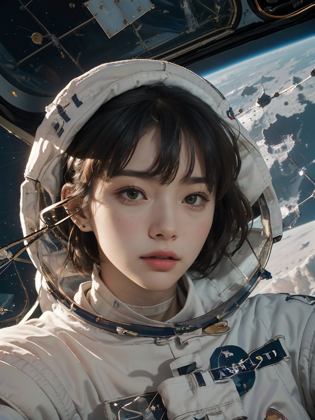 (a woman who is a (astronaut):1.4), (extremely detailed hyperrealistic masterpiece, best quality, high resolution uncompressed raw photo:0.9)