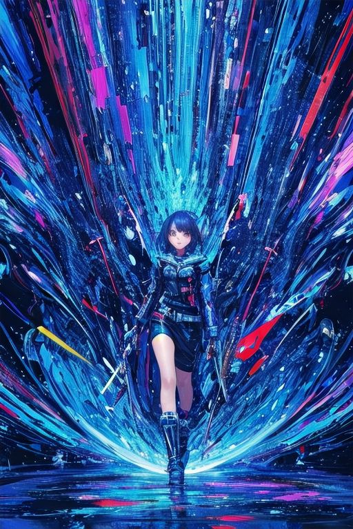 masterpiece, best quality, ultra high res, 1girl, (abstract art:1.4), bleeding blue, blue theme, visually stunning, beautiful, evocative, emotional, side vi