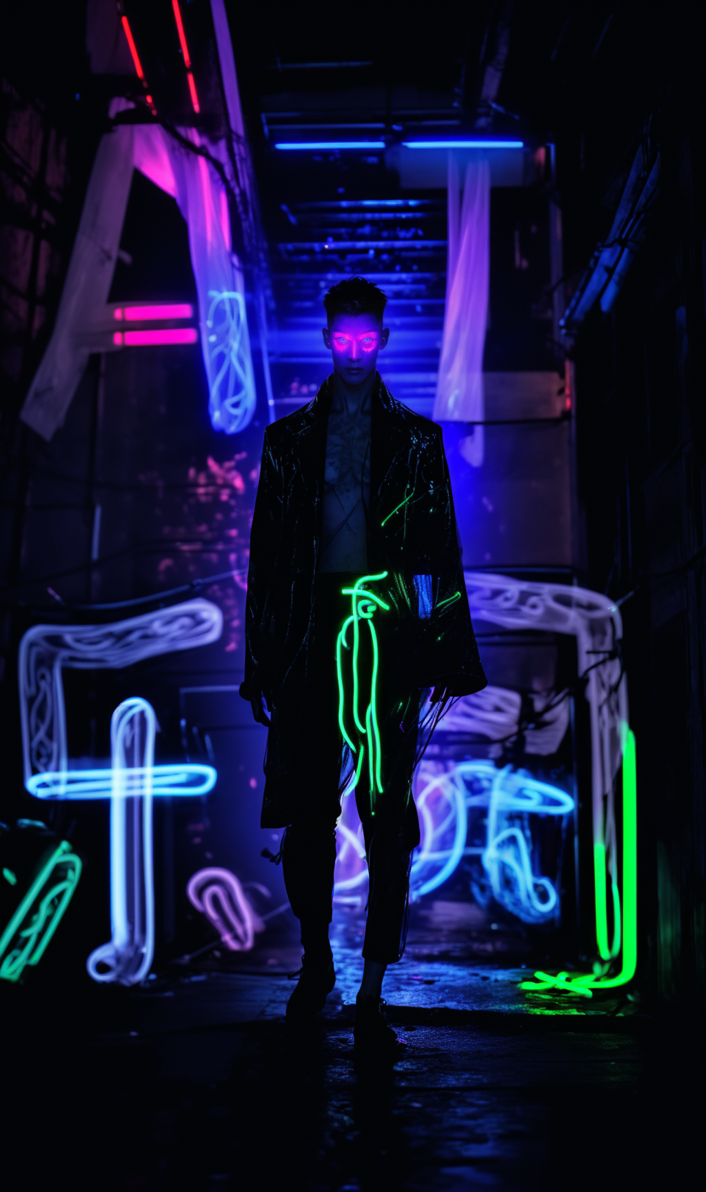 (1boy),handsome,fade,looking towards camera,Disgusting,neon light, ghost costume,glowing eyes, <lora:LowRA:0.3>dark theme <lora:insanevoid2:1.0> <lora:majisbpk_20230704213723:1.0:PALETTE>
