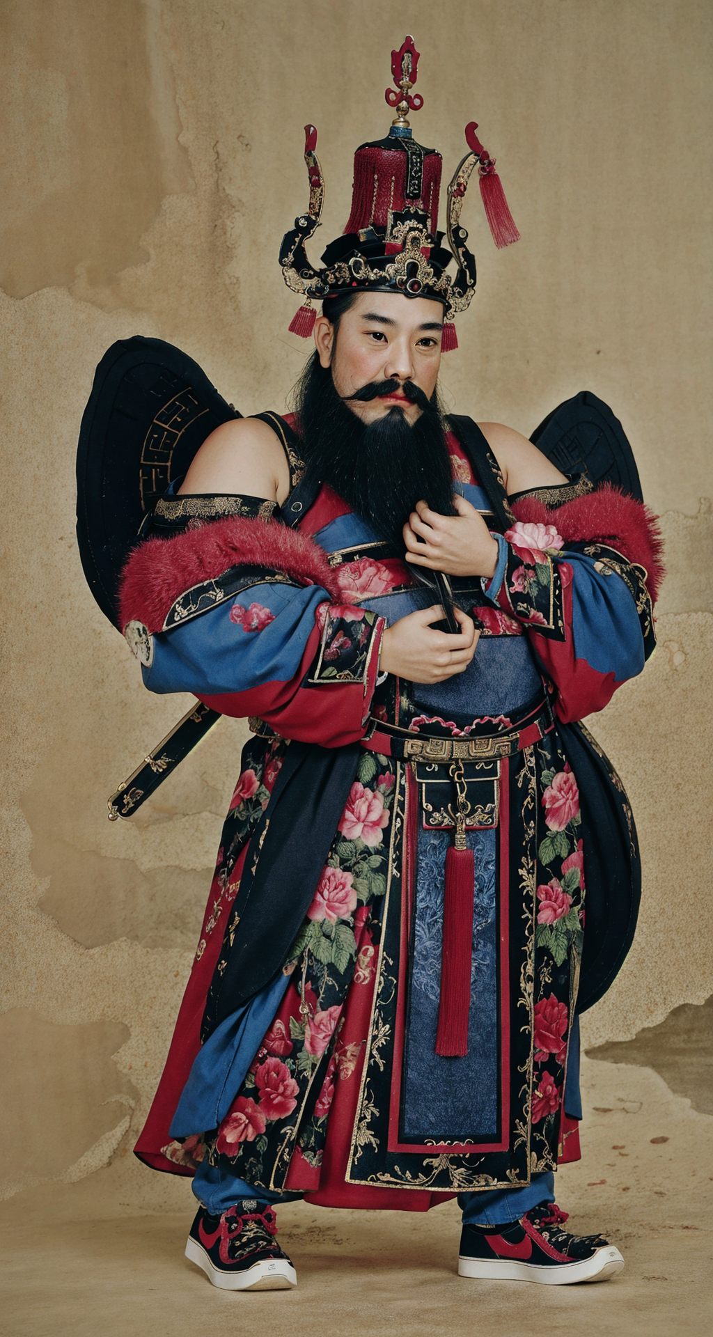 <lora:Doorgods:0.65>, chinese door gods, 1girl, beard, looking at viewer, Perfect body, natural skin texture, Best quality, masterpiece, pose, mustache