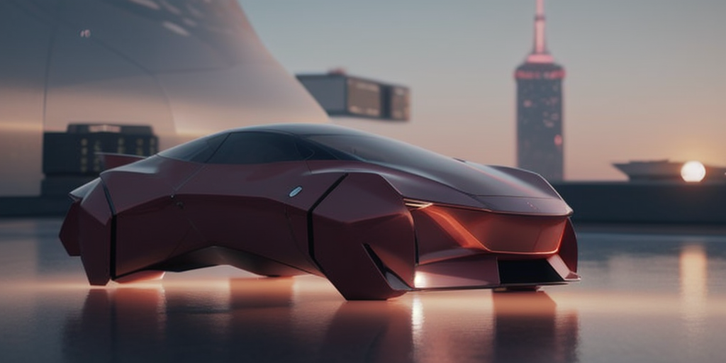 ((blender cycles render style)), solo, the futuristic city of Tokyo in the year 2050, sunset view reflected on the surface, lens flare, motion blur, blur background, (simple future concept speedform), futuristic form, muscular volume, masterpiece:2, best quality, floating vehicle, science fiction, reflection paint, ground vehicle, vehicle focus, ultra-realistic detail, reflective ground, cardesignworld, car design trend 2023, crimson pearl metallic paint, low camera angle, <lora:Speedform_v1:1>