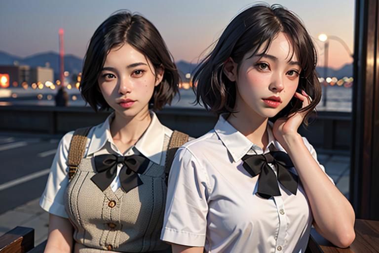 <lora:koreanDollLikeness_v10:0.3>,<lora:taiwanDollLikeness_v10:0.2>(8k, RAW photo, best quality, masterpiece:1.2), (realistic, photo-realistic:1.37), ultra-detailed, 1 girl,cute, solo,beautiful detailed sky,detailed cafe,night,sitting,dating,(nose blush),mouth) medium breasts,beautiful detailed eyes,(collared shirt:1.1), bowtie,pleated skirt,(short hair:1.2),floating hair
