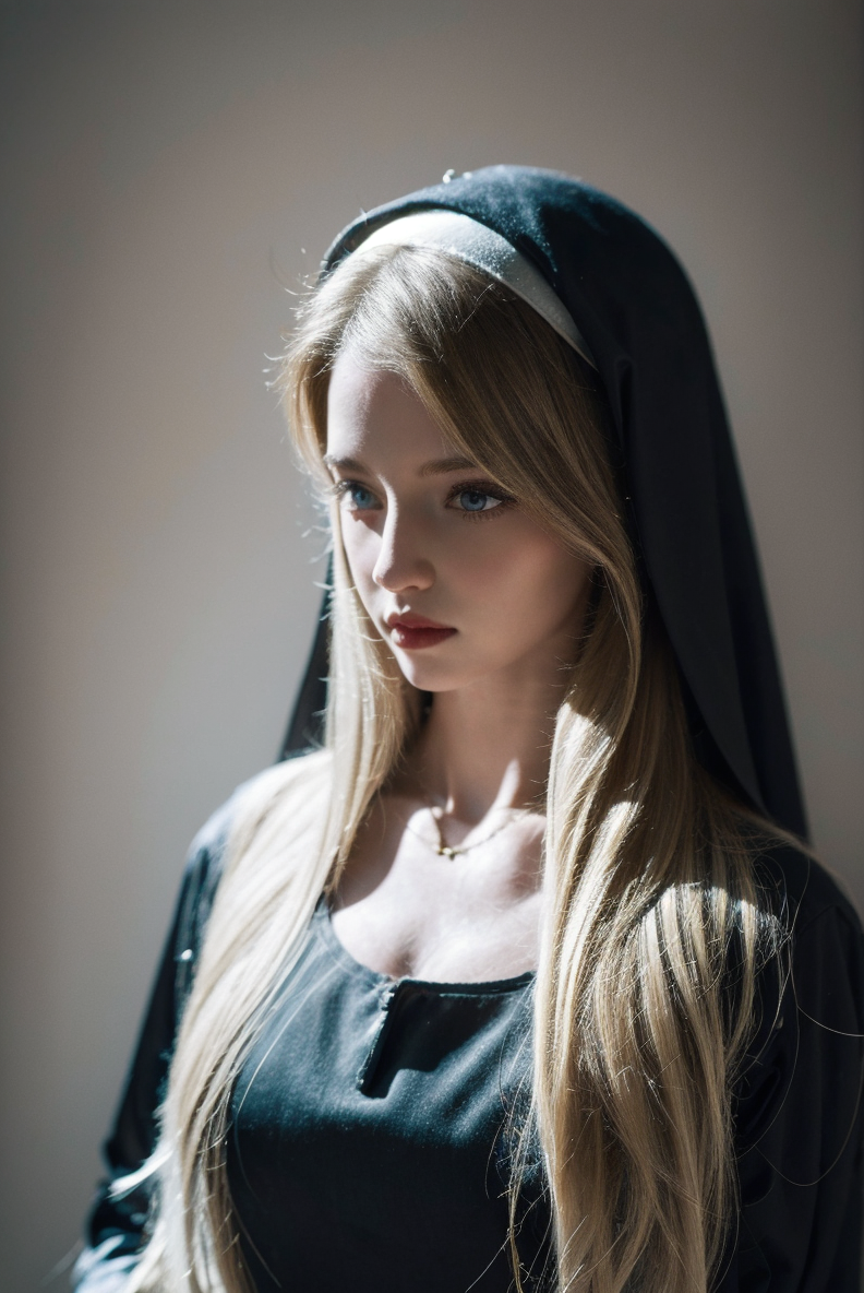 1girl, upper body, long hair, flow, Nun Viel, abstract, negative space, Light Blonde, heterochromia, (ink sketch,) Lovely girl, Goth girl, Best quality, masterpiece, <lora:MoosMST1:1> <lora:Mira-02:1>