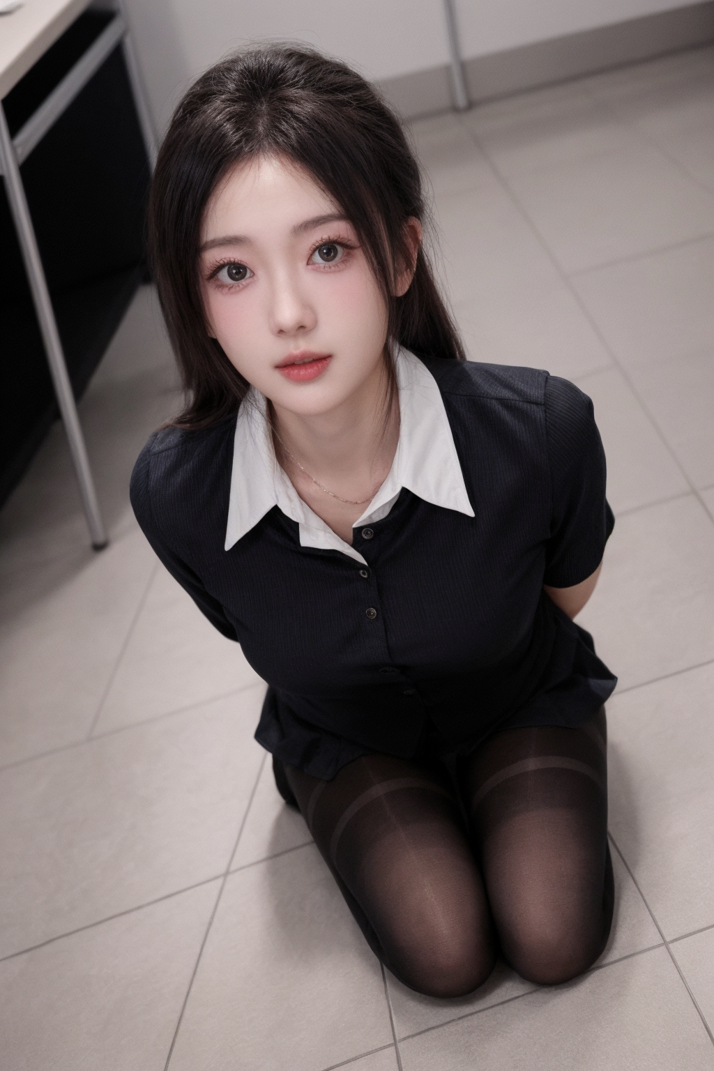 girl, high quality, looking at viewer,(upper body:0.7),office lady, office, kneeling on tile floor, pov, from above, arms behind back, black pantyhose, collared shirt, center opening, <lora:add_detail:1> <lora:linger_v1-000007:0.45> <lora:ip-adapter:0.65>