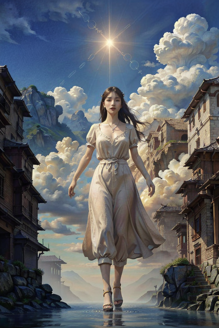 1girl, BEST QUALITY, MASTERPIECE, 8K, SOLO, PHOTOREALISTIC, 1girl, HUGE GOD, FLOATING, GLOWING, CLOUD, LIGHTING, CROWDED, <lora:HugeGodV1:0.7>, kwf, <lora:kwFemaleBeta1_v12:0.3>