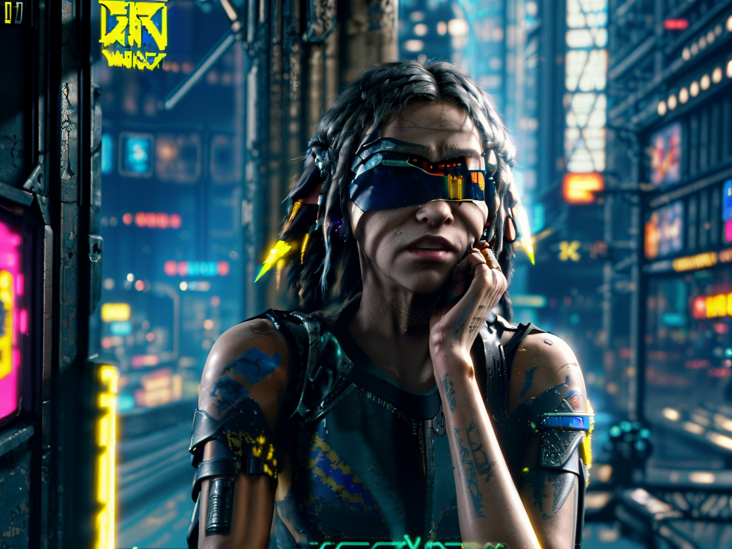 A cyberpunk scene where (Dobby the house elf :1), (pointed ears:1.3) stands alone in a dark neon lit alleyway at night. Flickering holographic signs shine above him casting colorful lights across his face. <lora:add_detail:1.5> ((cyberpunk 2077 facemarkings: 1.4) , (cyberpunk augmentations:1.2), (mechanical bodyparts and prostheses:1.1) 80mm raw, lightroom, professional photo (breathtaking:1.25), <lora:Dobby:1> ,(cyberpunk 2077 background: 1.3), glow effects, godrays, Hand drawn, render, 8k, octane render, cinema 4d, blender, dark, atmospheric 4k ultra detailed, cinematic, Sharp focus, big depth of field, Masterpiece, colors, 3d octane render, 4k, concept art, trending on artstation, hyperrealistic, Vivid colors, extremely detailed CG unity 8k wallpaper, trending on CGSociety, Intricate, High Detail, dramatic, detailed skin texture, (blush:0.5), (goosebumps:0.5), subsurface scattering