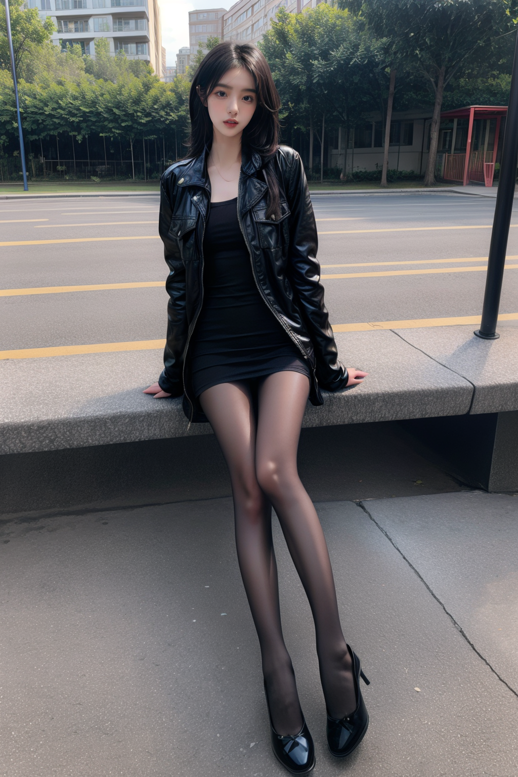 <lora:hsod:0.7> <lora:å°æ¡åå¦:0.7> <lora:add_detail:1> (nsfw), ((masterpiece)), (((best quality))), ((ultra-detailed)), ((illustration)), dynamic angle,1girl,0d,black pantyhose,high heels,full body,Black hair,Half-up, half-down hairstyle,jacket,Contrapposto pose,feeding,looking at viewer, playground,sunlight, outdoors,