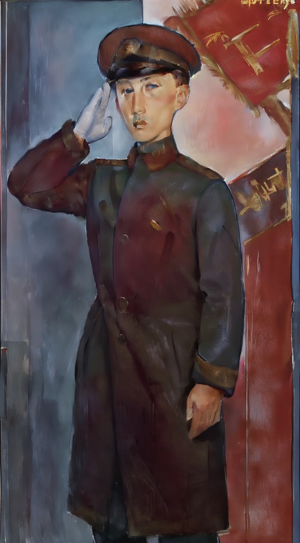 1girl, flags in background, ((Military uniform, army cap, Red star, red Communist-style star, soviet, soviet flag, communism)), (masterpiece, best quality, high quality, official art), (colorful), multicolored background, <lora:md:1.1> <lora:add_detail:0.1> <lora:epi_noiseoffset2:0.1>