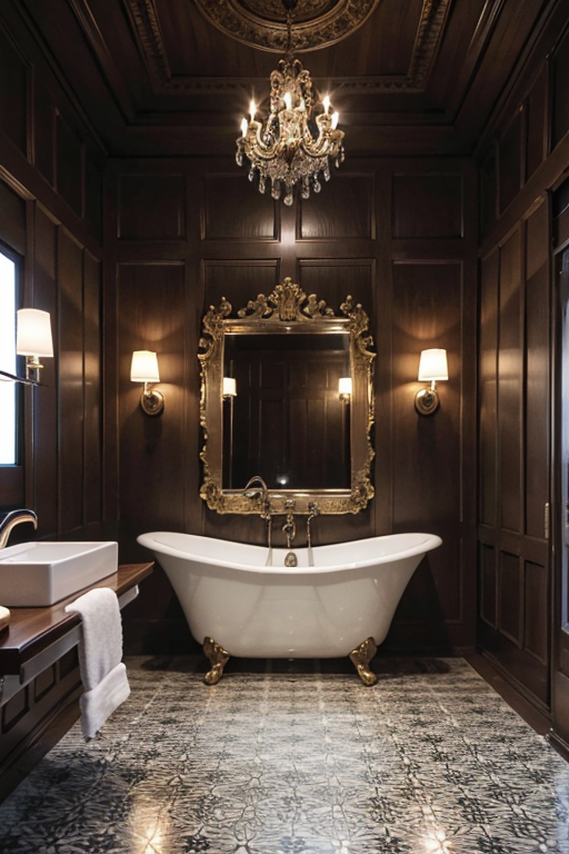javaneseinterior, detail, realistic, bathroom shower, painting, flower pattern, dim light, ornament, mirror, ornate, detail, traditional, ceramic floor, <lora:ARWJavaneseInterior:1>