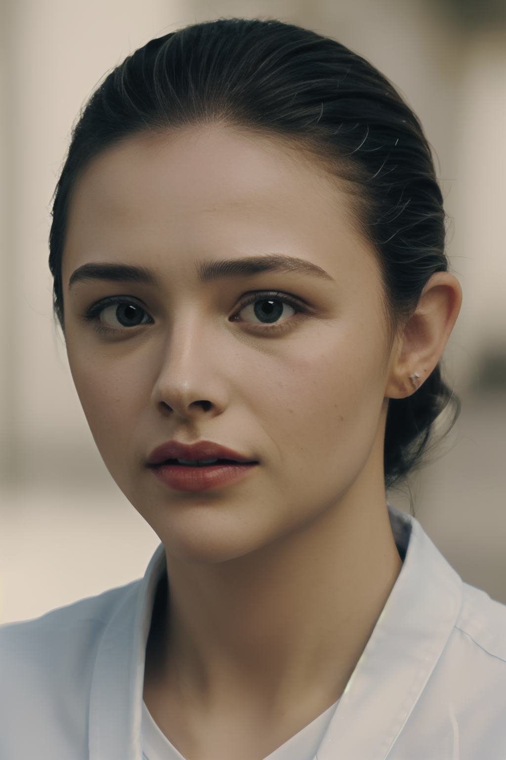 1girl,flynne fisher,masterpiece,realistic,close up, <lora:flynne_fisher:0.6>,white shirt,front view,