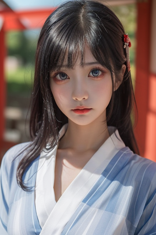 (best quality, masterpiece:1.2), (realistic:1.3), high resolution,(ultra-detailed background, detailed background), bokeh,(symmetrical clear eyes:1.3),an extremely cute and beautiful girl,highly detailed beautiful face,black eyes,beautiful hair,((colorful japanese yukata)),1girl, solo,dynamic angle,cowboy shot,<lora:wendy:0.8>
