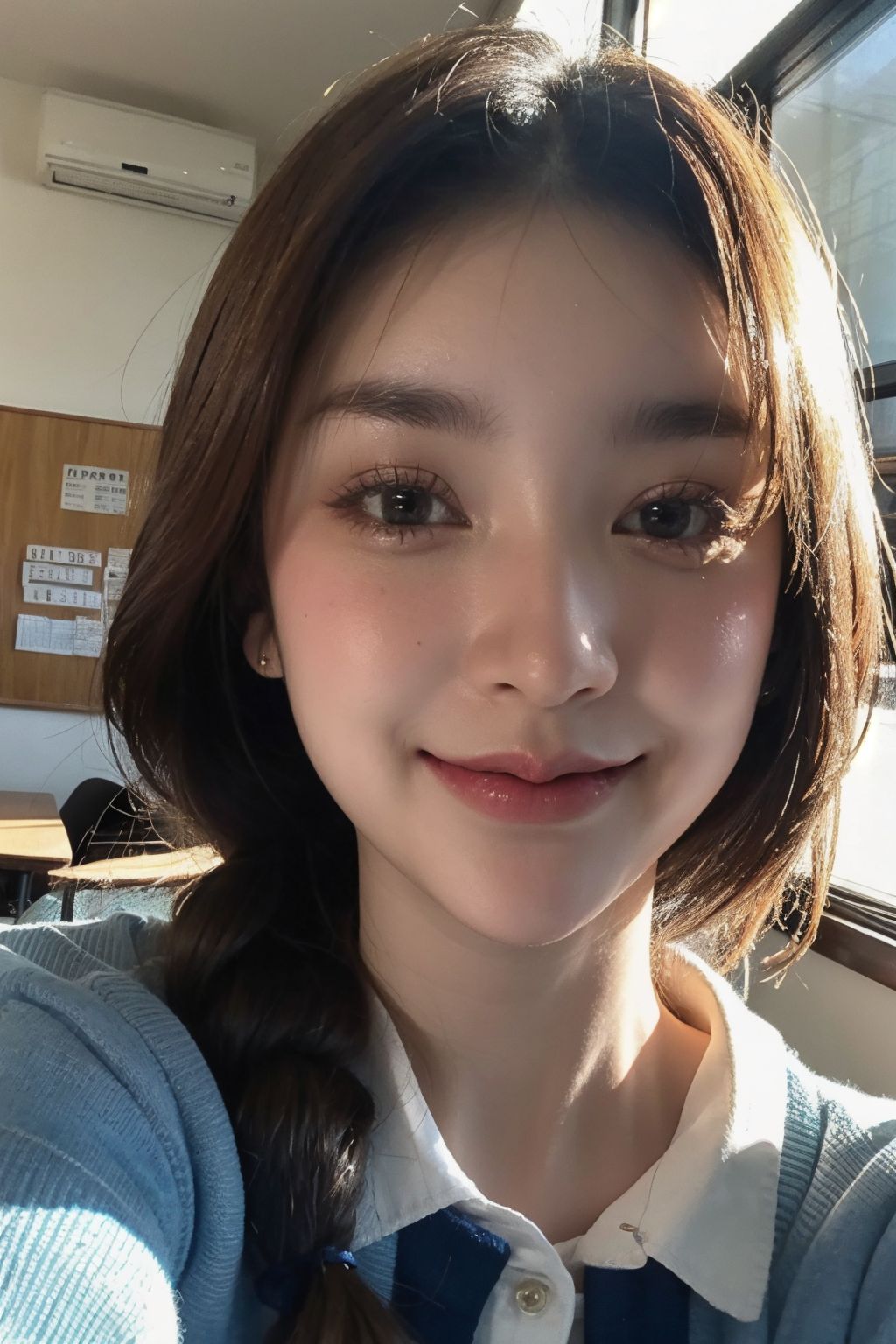 a photo of rmmr, 18 year old girl in the classroom, close up, <lora:rmmr-15:0.9>, (intricate details:0.8), (hdr, hyperdetailed:1.2), school uniform