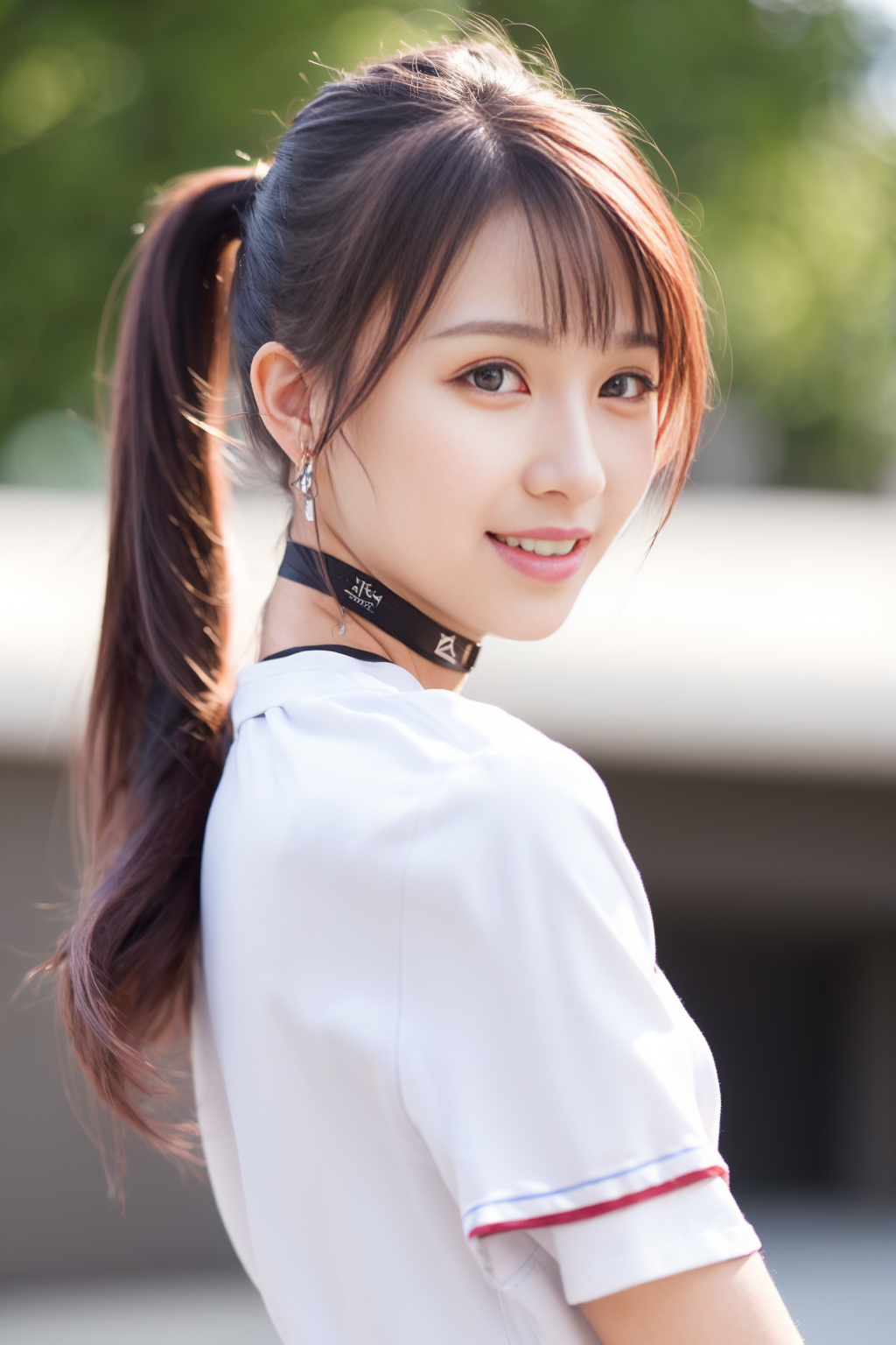 <lora:meiling_v01:0.9>, (8k, RAW photo, best quality, masterpiece:1.2), (realistic, photo-realistic:1.37), omertosa,1girl, blurry background,lake, rain,wet,professional lighting, photon mapping, radiosity, physically-based rendering, backlight bokeh, blurry background, mature,((black choker)), red lips, office lady ,((lights shinning on the face)) head portrait , sunlight, ((outdoors)) ,((light shinning on the hair)) school uniform, ((ponytail hair)), ((floating hair)), pink hair,straight hair, glowing hair, 135mm lens,,big breast,red lips,smile