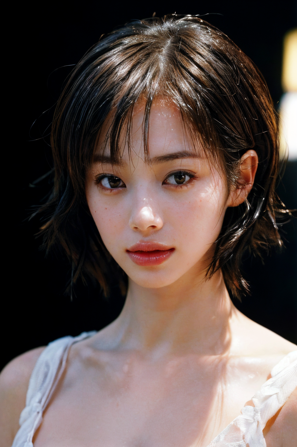 (masterpiece, best quality, beautiful quality, photorealistic, detailed lighting, extremely detailed skin, extremely detailed hair, shadows, 8k, a picture of a mature woman, short hair, black hair, forehead, upper body, 1girl, fcPortrait:1.2), <lora:add_detail:1>, (15 years older:1.5) <lora:inouewaka_lora-06:0.9:OUTALL>, inouewaka