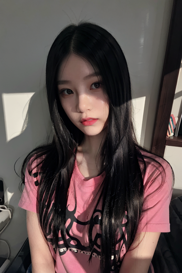 light from left,1girl, looking at viewer, long hair, pink shirt, upper body, best quality, masterpiece, sunlight, shining in through the window,shade,strong contrast,large light ratio,sunlight, <lora:benxi:0.8>