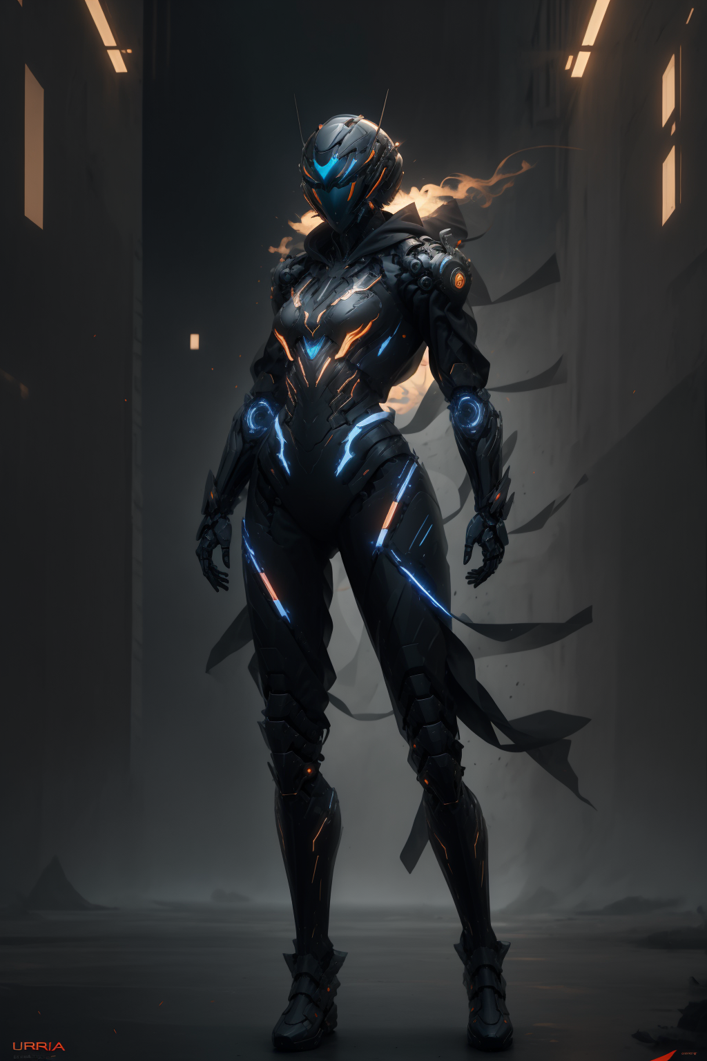 ((best quality)),absurdres,(ultra high res), a woman, mechanical suit, cyber helmet, looking at viewer, realistic, extreamly detailed, (8k), (Masterpiece), <lora:robsuit:0.77>