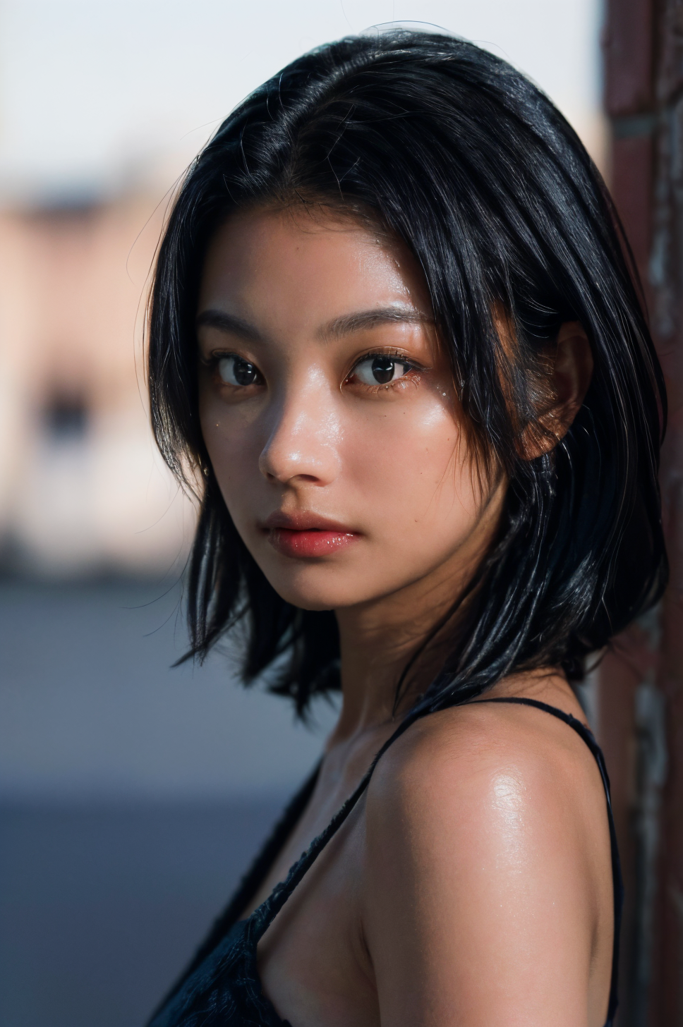 (masterpiece, best quality, beautiful quality, photorealistic, detailed lighting, extremely detailed skin, extremely detailed hair, shadows, 8k, a picture of a woman, black hair, upper body, 1girl, looking at viewer, fcPortrait:1.2), <lora:add_detail:1>, <lora:koikeeiko_lora-07:0.9:OUTALL>