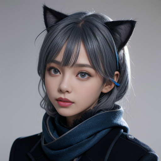 1girl,shiroko (blue archive),hair ornament,extra ears, medium hair,blue eyes, blue scarf,black jacket,blue jacket, open clothes, grey hair, cat ears, masterpiece, best quality,