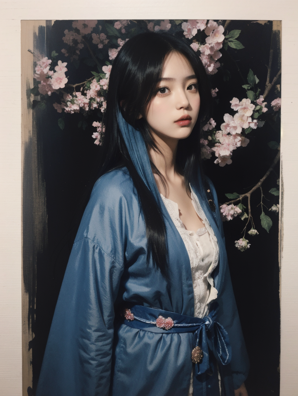 (masterpiece, best quality:1.4),(absurdres, highres, ultra detailed), (1 girl:1.5),photo doodling, playful illustrations, imaginative overlays, whimsical storytelling, mixed-media technique, artistic fusion,photo manipulation, altered realities, fantastical scenes, digital artistry, creative editing, evocative narratives, striking visuals, elemental mage robe, sash representing elements, elemental staff ,(Chinese Valentine's Day), 1girl,blue hair, black hair, multiple color hair, long hair, facing viewer