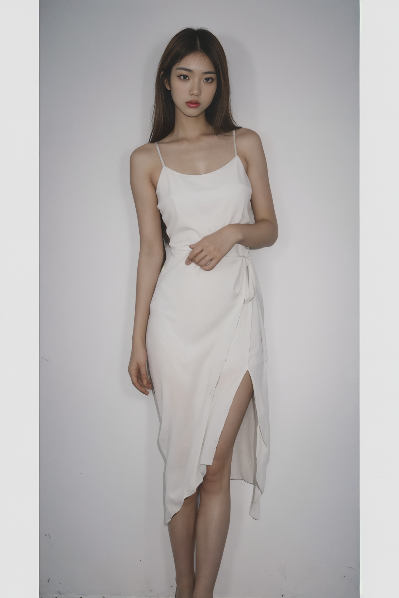 nsfw, best quality, masterpiece, ultra high res, (photorealistic:1.3), 8K, raw photo, 1girl, natural skin texture, blonde , wearing white dress, dressing room, natural skin texture, dynamic pose, top model, film grain,asian, <lora:ClothingAdjuster3:0> <lora:InstantPhotoX3:0.7>, <lora:badbromaxidress:0.15>, mxdress, full body