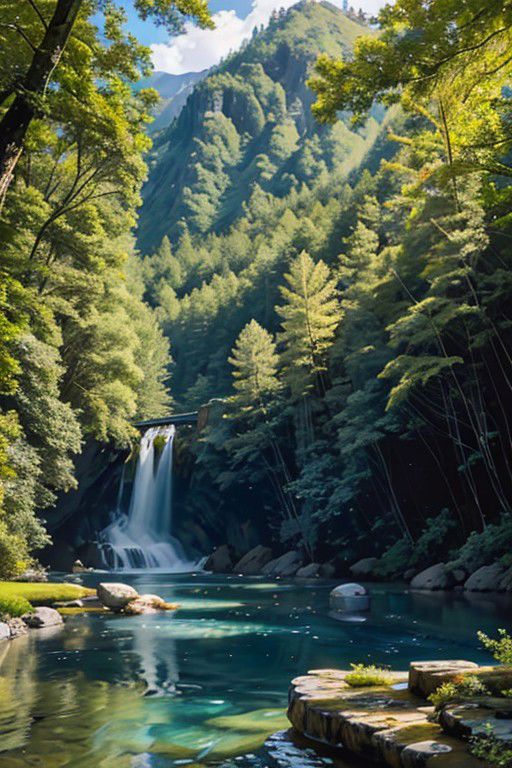 spectacular innovation, a beautiful scenery meticulously assembled with semiconductors and thin wires, demonstrating exceptional quality and ultra-detailed craftsmanship in UHD. The scene unfolds a serene landscape, where majestic mountains in the background are intricately formed from layered semiconductor materials, and a tranquil river is depicted with a web of glistening thin wires, flowing through a lush valley. The unique use of semiconductors and wires adds depth and a futuristic texture, reimagining the essence of the natural world through a high-tech lens. The play of light off the metallic surfaces creates a dynamic interplay of light and shadow, unveiling subtle details of trees, rocks, and water reflections, all precisely engineered with care and precision. The overall composition is a fusion of technology and art, radiating a peaceful yet surreal quality, inviting viewers to immerse themselves in this innovative, electronically crafted natural sanctuary