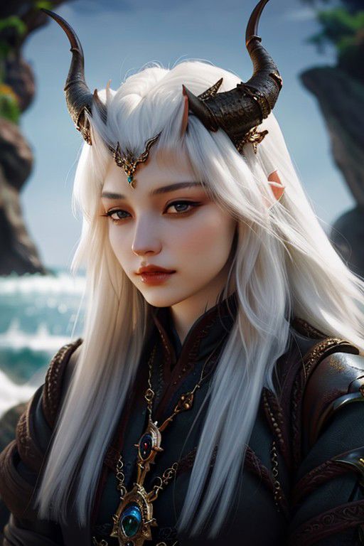 best quality, fantasy epic, a beautiful girl, dragon-horns, portrait