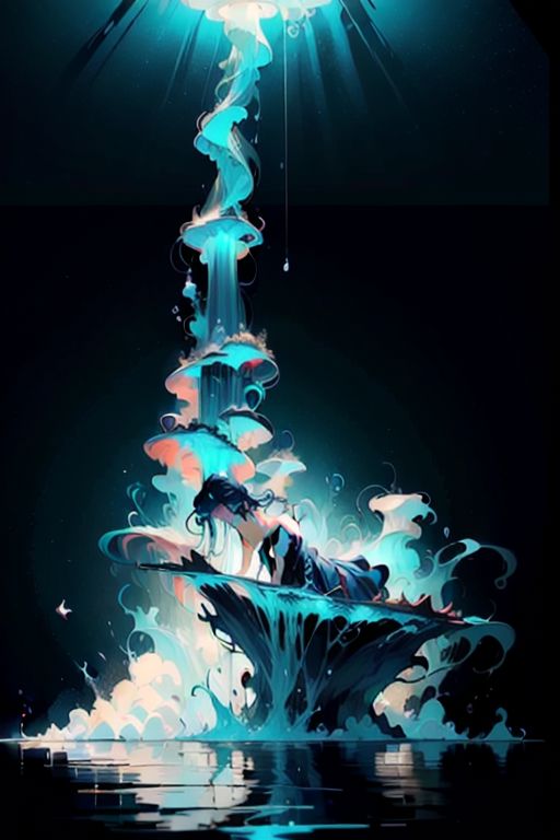 ((blue and navy color tone:1.3)) 1girl, solo,jellyfish filling up the ocean, millions of jellyfish, a girl swimming ((naked)) in the deep ocean surrounded by jellyfish, ((jellyfish)), deep black ocean,under the sea,(photorealistic:1.4), official art, unity 8k wallpaper, ultra detailed, beautiful and aesthetic, masterpiece,best quality, (dynamic angle:1.4), glowing skin, (floating colorful sparkles:1) the most beautiful form of chaos, elegant, a brutalist designed, vivid colours, romanticism, ultra wide angle, <lora:add_detail:0.3> <lyco:GPTS4 dreamwave full_478773:1.0>