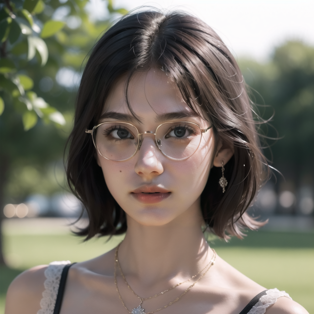 best quality, masterpiece, (photorealistic:1.4), 1girl, close up,eyewear on head,Necklaces,